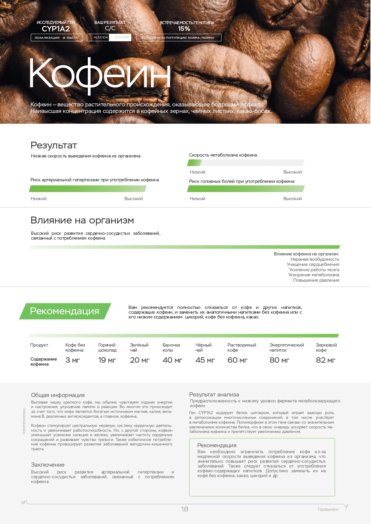 | Рацион питания Метаболизм алкоголя Метаболизм кофеина Физическая нагрузка Непереносимости Вкусовые ощущения Никотин Психологические зависимости Пищевое поведение Потребность в витаминах Уровень холестерина Спортивный потенциал | Рацион питания Метаболизм алкоголя Метаболизм кофеина Физическая нагрузка Непереносимости Вкусовые ощущения Никотин Психологические зависимости Пищевое поведение Потребность в витаминах Уровень холестерина Спортивный потенциал | Рацион питания Метаболизм алкоголя Метаболизм кофеина Физическая нагрузка Непереносимости Вкусовые ощущения Никотин Психологические зависимости Пищевое поведение Потребность в витаминах Уровень холестерина Спортивный потенциал |